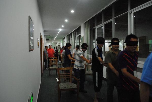 黑暗中學(xué)員手拉手,團(tuán)結(jié)互助向前走